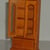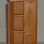 Pine linen wardrobe with 2 opening doors with gold knobs and 2 shelves inside.