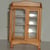 Pine display cabinet with glazed surrounds, 2 opening doors with gold knobs and 3 glazed shelves inside.