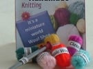 Pack of 6 different colour knitting wools together with a pair of knitting needs
