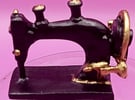 Dolls miniature black plastic sewing machine with gold trimming (non-working)