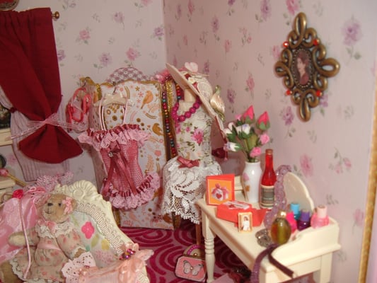 A boudoir is where a lady may retire to her private room surrounded by all her favourite things and Vanessa is a girly girl with romanticism and fashion and this shows off her sensual side in a lovely tasteful boudoir.