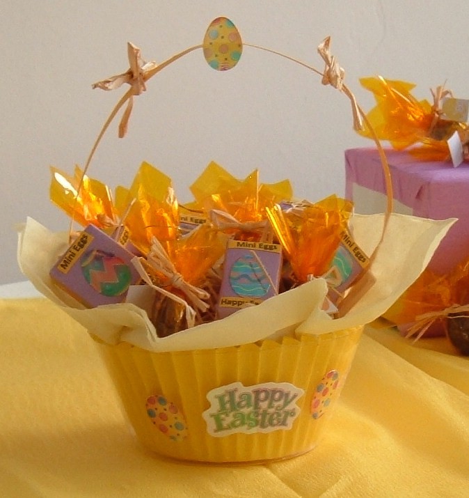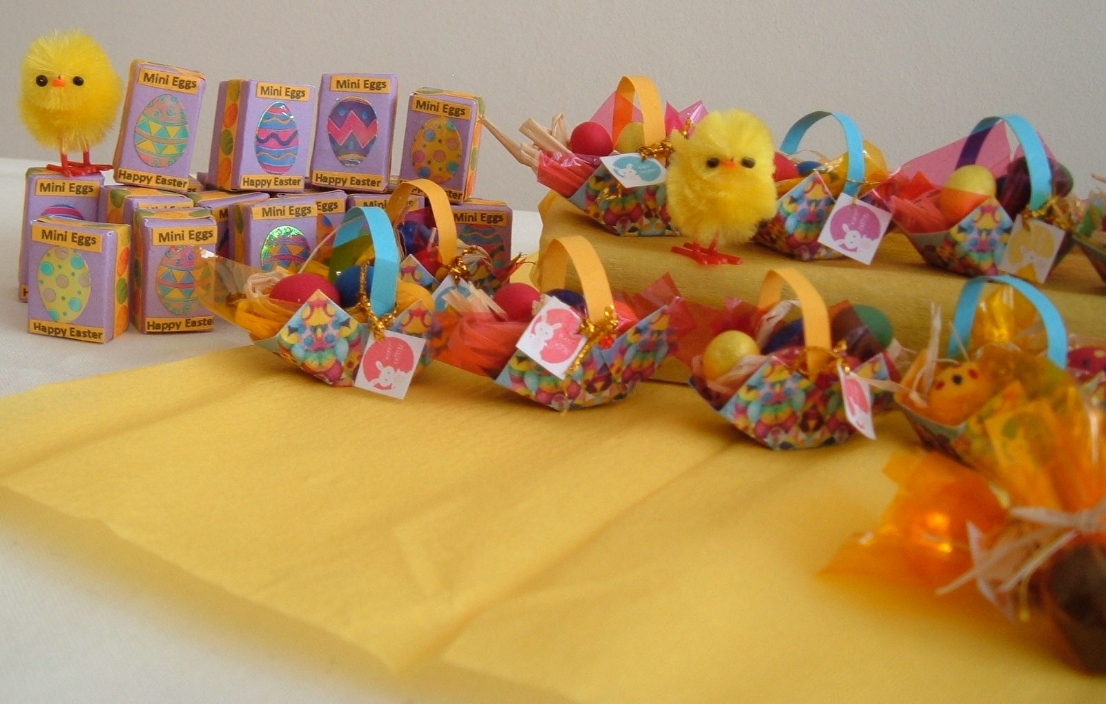 The eggs have simply been made from fimo and wrapped up in cellophane tied together with a Happy Easter tag. The baskets have been lovingly made from different card materials.
